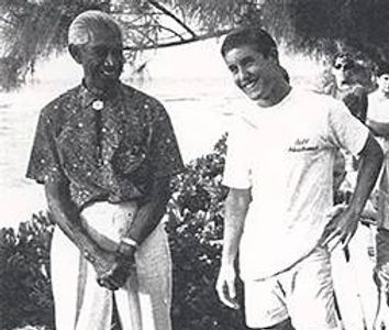 17 year old Jeff Hakman next to Duke Kahanamoku as Jeff claims his first place title at the Duke.
